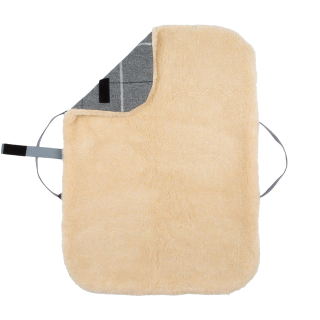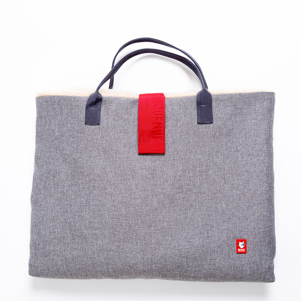 Die Unterseite ist wasserabweisend, innen wir mit kuscheligem (künstlichen) Fell gearbeitet. Die Decke ist dank Klettverschluss einfach zu falten und kann an den Henkeln ganz einfach mitgenommen werden.